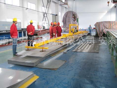 該應用實例吸吊重量500Kg,10只吸盤頭,每只直徑260mm,吸吊深度達4毫米的波紋板,吸吊板長16m*2m;
